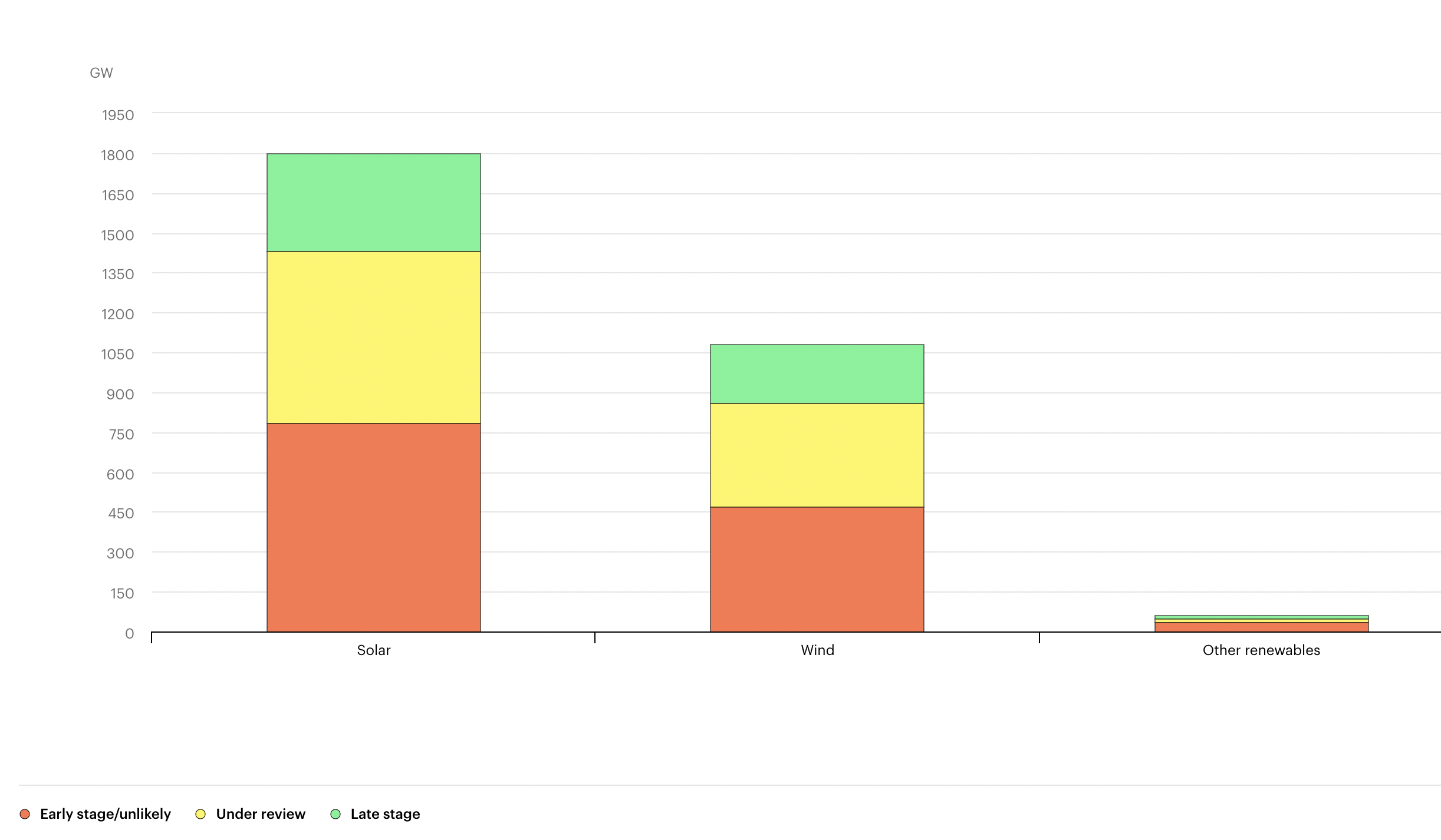 Source: International Energy Agency (IEA), Capacity of renewable energy projects in connection queues, 2024